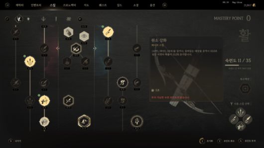 여기에 캐릭터 레벨과 별도로 무기를 사용할수록 해당 무기의 숙련 레벨이 올라가면서 마스터리 포인트를 얻도록 설계됐다. 또 해당 포인트를 원하는 스킬에 투자하며 트리를 뻗어나가는 구조를 취하고 있다. 기본적인 유저 인터페이스 기준으로, 4개의 스킬을 전투에서 사용할 수 있다. 때문에 어떤 스킬 조합을 만들어갈지 고민하게 만든다.