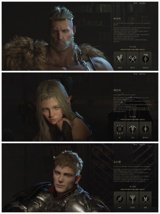 이번 테스트에서는 소서러, 어쌔신, 버서커, 팔라딘, 레인저, 소드맨 등 6개 클래스 중에서 버서커, 레인저, 소드맨 3개를 먼저 체험해 볼 수 있다. 여기에 클래스별 3개 타입의 무기를 사용 가능한 방식으로 각각의 매력을 더한다.