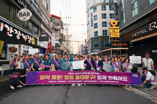 이필형 동대문구청장도 직접 현장을 찾아 유흥시설 종사자와 이용객들에게 홍보물을 배포하며 캠페인에 동참했다. 이 구청장은 “민·관·경이 힘을 모아 구민의 건강과 일상을 위협하는 마약을 근절, 마약 없는 ‘청정 동대문구’를 만들기 위해 최선을 다하겠다”고 밝혔다.