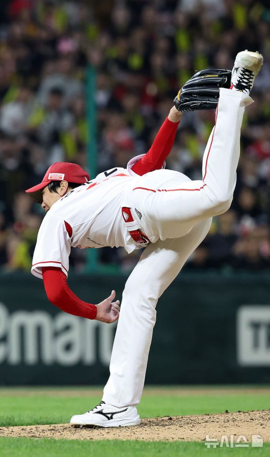 [인천=뉴시스] 이영환 기자 = 11일 오후 인천 미추홀구 SSG랜더스필드에서 열린 2025 프로야구 KIA 타이거즈와 SSG 랜더스의 더블헤더 2차전 경기, 7회초 SSG 선발 김광현이 역투하고 있다. 2025.05.11. 20hwan@newsis.com |