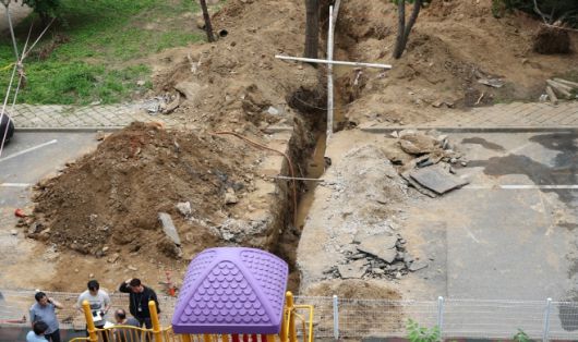 아시아투데이 김홍찬 기자 = 서울 강남구 대치동 은마아파트에서 노후하수관 교체 공사 중 흙더미가 무너지면서 작업자 2명이 매몰돼 1명이 숨졌다.