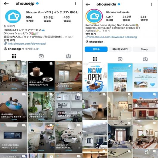 오늘의집(Ohouse)이 일본과 인도네시아에서 수십만명의 SNS 팔로워를 보유 중이다. 사진=인스타그램 캡쳐 |