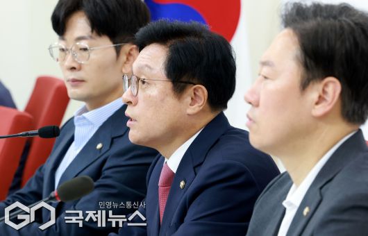 (서울=국제뉴스) 박형수 국민의힘 원내수석부대표가 13일 오전 서울 여의도 국회에서 현안 기자간담회에서 사의를 표명한 오광수 민정수석 관련 발언을 하고 있다./사진=이용우 기자