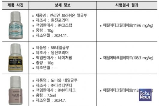 또한 국내 제조 4종 제품 중 환경부 리콜을 실시하고 있던 1종 제품을 제외한 3종 제품(엔리안 브러쉬온 젤글루, BB네일글루, 도나와 네일글루)의 2개 제조사(원진포리머, ㈜다성티엔티더불어)에게 법·기준 위반 통보 및 시정조치를 요청했고, 사업자들은즉시 판매 중단 후, 재고 폐기 및 판매 제품에 대한 환불 등을 실시하기로 했다.