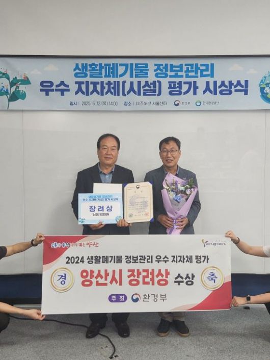 경남 양산시는 환경부 주최 '2024년 생활폐기물 정보관리 우수지자체 평가'에서 장려상으로 선정돼 환경부 장관상을 수상했다.