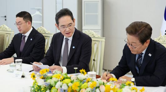 이 대통령은 이날 용산 대통령실에서 5대 그룹 총수와 경제 6단체장과 간담회를 열었다. 이들은 2시간 20분가량 도시락을 먹으며 각종 경제 현안에 대해 의견을 나눴다.