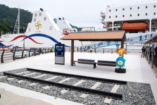 사동 여객선터미널에 조성된 '울릉(사동)역'은 철도역의 디자인을 반영한 간이역 형태로 꾸며졌다. 벤치형 쉼터와 포토존이 함께 설치돼 관광객들에게 색다른 볼거리와 휴식 공간을 제공한다.