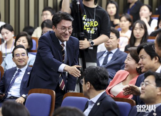 ⓒ일요시사 김민석 국무총리 후보자가 13일 서울 여의도 국회에서 열린 제22대 국회 더불어민주당 제2기 원내대표 선출 의원총회에 참석하며 의원들과 악수를 하고 있다. 일요시사=고성준 기자(joonko1@ilyosisa.co.kr) <joonko1@ilyosisa.co.kr> 저작권자 ©일요시사 무단전재 및 재배포 금지