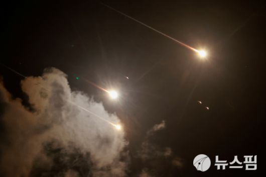 지난 1일(현지시간) 이스라엘 수도 텔아비브 상공에서 포착된 이란이 발사한 탄도미사일. [사진=로이터 뉴스핌] |