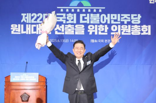 김병기 더불어민주당 의원이 13일 국회에서 열린 제2기 원내대표 선출 의원총회에서 원내대표로 선출된 뒤 손을 들어 인사하고 있다. 오승현 기자 2025.06.13오승현 기자 story@sedaily.com[ⓒ 서울경제, 무단 전재 및 재배포 금지]