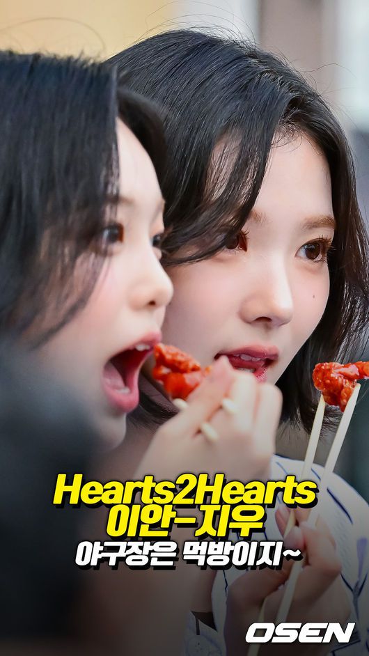 걸그룹 하츠투하츠 지우, 이안이 시구 시타를 마치고 경기를 관전하고 있다. /jpnews@osen.co.kr