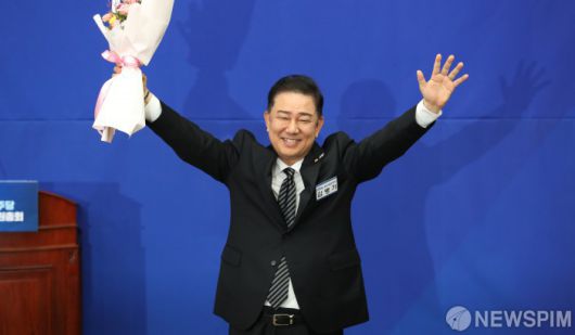 [서울=뉴스핌] 김학선 기자 = 더불어민주당 김병기 신임 원내대표가 13일 오후 서울 여의도 국회에서 열린 제2기 원내대표 선출 의원총회에서 원내대표로 선출된 뒤 포즈를 취하고 있다. 2025.06.13 yooksa@newspim.com
