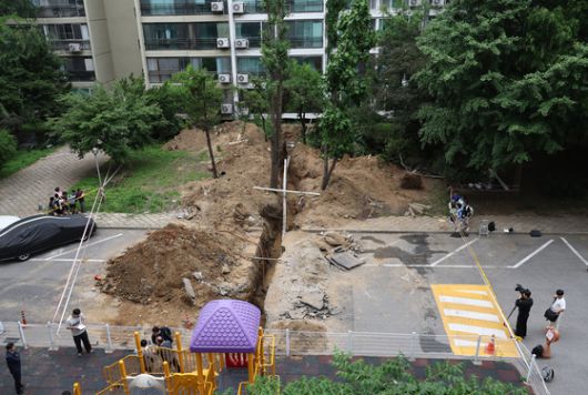 13일 경찰과 소방당국에 따르면 이날 오후 1시 2분쯤 서울 강남구 대치동 은마아파트 하수관 교체 작업 현장에서 땅이 무너지는 사고가 발생했다.