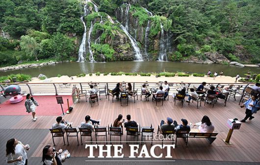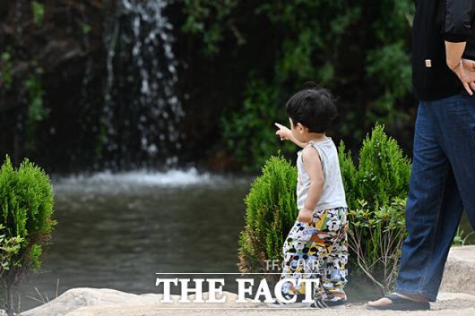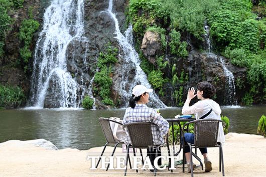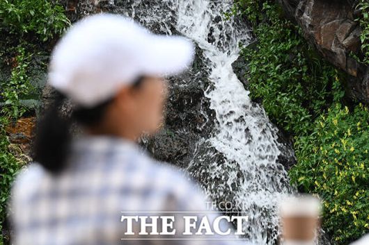 [더팩트ㅣ서예원 기자] 서울 낮 최고 기온이 29도까지 올라 한여름 날씨를 보인 12일 오후 서울 서대문구 홍제천 인공폭포에서 시원한 물줄기가 흘러내리고 있다.