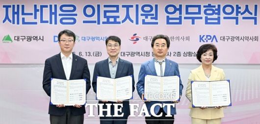 민복기 대구시의사회장은 "재난 발생 시 시민의 건강과 생명을 지키는 것은 의료인의 기본 책무인 만큼 신속한 의료지원 등 협력을 아끼지 않겠다"고 말했다.