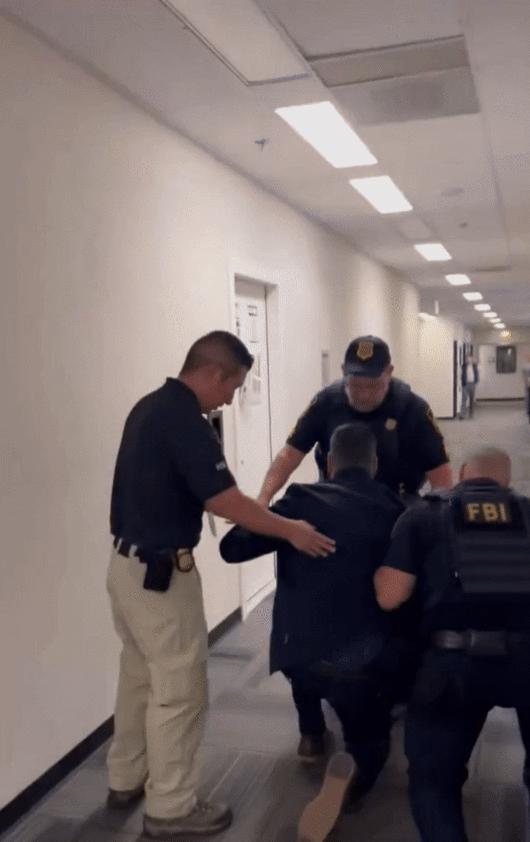 [서울=뉴시스]이소원 인턴 기자 = 미국의 이민자 단속 강화로 긴장이 고조되는 가운데 트럼프 행정부의 국토안보부 장관 기자회견장에서 현직 상원의원이 경호 인력에 의해 발언 기회를 차단당하고 강제로 퇴장당하는 일이 벌어졌다.