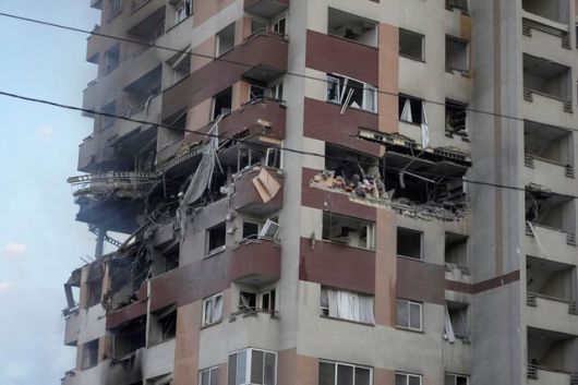 13일 이란 테헤란에서 이스라엘의 공습을 받은 아파트 건물이 크게 파손됐다. / AP·뉴시스 |