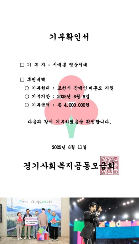 한편, '시애틀 영웅시대'는 2022년부터 포천시에 꾸준히 기부하는 등 지역사회에 선한 영향력을 전파하고 있다.