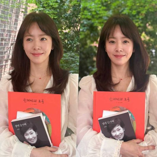 공개된 사진 속 한지민은 순백의 블라우스를 입고 환한 미소로 책을 들고 있는 모습. 손에는 백은하 소장이 집필한 『생에 감사해』와 『은혜씨의 포옹』을 들고 있어 눈길을 끌었다. 자연광 아래 더욱 돋보이는 인형 같은 비주얼과 여유로운 분위기는 연하남인 가수 최정훈과의 열애 중인 ‘연상녀’의 청순한 매력을 그대로 담아냈다.