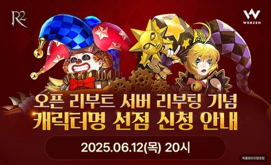 캐릭터명 선점 이벤트는 오는 16일 0시까지 R2 계정에 로그인 후 참여할 수 있으며 신청한 캐릭터명은 리부팅 서버가 시작되는 19일부터 사용할 수 있다.
