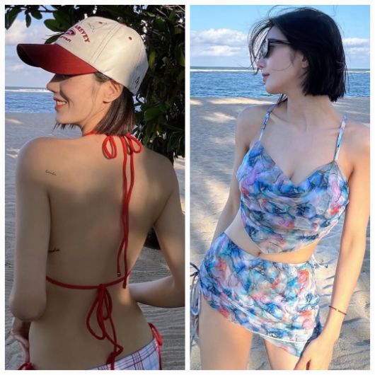 공개된 사진 속 권은비는 꽃무늬가 더해진 비키니 탑과 매치된 스커트 스타일링으로 세련된 휴양지 패션을 완성했다.