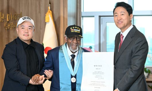 서울시는 오세훈 시장이 한국전쟁에 참전했던 미국인 제롬 골더를 만나 명예시민증을 전달하고, 22개국 참전용사를 찾아가 사진으로 기록하는 ‘프로젝트 솔져: 한국전쟁 참전용사를 찾아서’ 특별전 작가 라미(현효제)씨를 만나 면담했다고 13일 밝혔다.