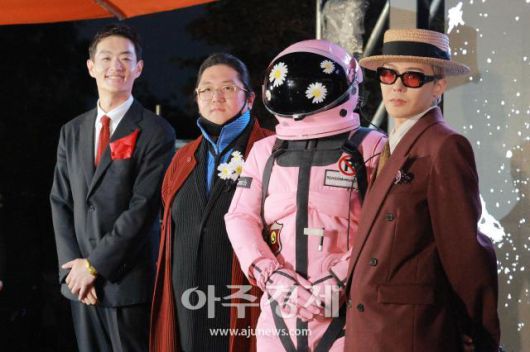 사진 오른쪽부터 지드래곤(GD), 우주인, 최용호 갤럭시코퍼레이션 대표 겸 저스피스재단 이사장, 박상재 부루구루 대표. 2025.06.13
