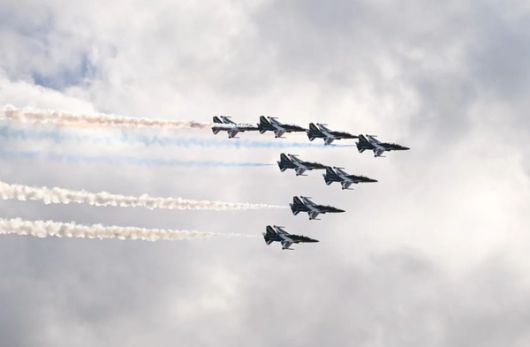 한편, 블랙이글스는 국산 초음속 항공기 T-50B 8대로 구성된 공군 특수비행팀이다.