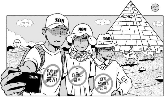 모래 바닥만 보며 걷기를 30여 분, ‘김아빠’씨는 아들에게 불만이 쌓이기 시작한다. “낙타 타자”더니 사방에 널린 낙타를 왜 안 타는지 모르겠다. 덥다. 얼마나 더 가야 하는지 알면 덜 힘들 텐데, “왜 안 타느냐” 물으면 “가만히 좀 있어 보라”며 휴대전화만 들여다본다. 속이 부글부글 끓기 시작한다.