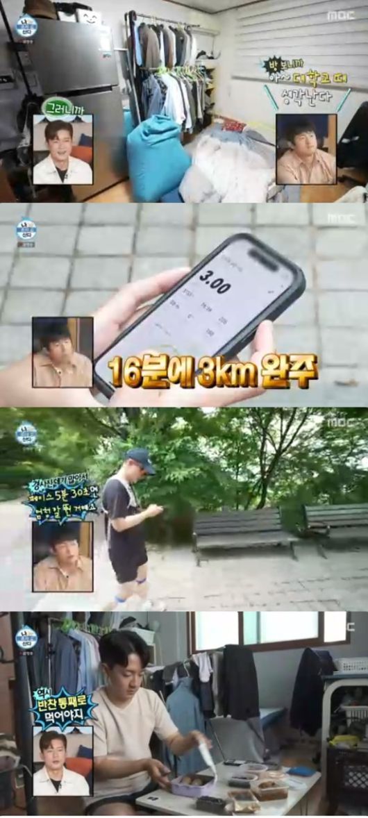 고강용은 일어나서 운동복 차림을 하고 러닝을 했다. 고강용은 3km를 16분 만에 완주했는데 기안84는 "저 정도면 잘 뛴 거다"라고 괜찮은 기록이라고 했다.
