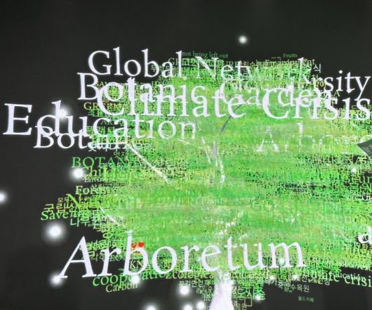 12일 제11차 세계식물원교육총회 폐막식에서 선보인 단어 구름. 총회에서 주요하게 다뤄진 키워드는 생물다양성, 글로벌 네트워크, 시민과학 등이었다. 국립수목원 제공 |
