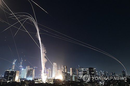 (이스탄불=연합뉴스) 김동호 특파원 = 이란이 13일(현지시간) 이스라엘의 공습으로 자국 핵시설에 피해를 본 데 대한 보복으로 미사일을 다량 발사했다.