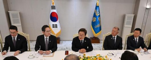 13일 오전 용산 대통령실에서 열린 이재명 대통령과 국내 5대 그룹 회장 및 6개 경제 단체장 간담회는 화기애애한 분위기 속에서 진행됐다. 이날 간담회는 예정된 시간을 넘겨 도시락 점심으로 이어질 정도로 분위기가 좋았지만 상법 개정안 등 예민한 이슈까지 다루지는 못한 것으로 전해졌다.