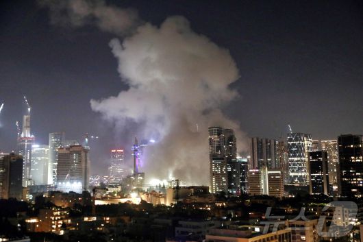 13일(현지시간) 이란의 미사일 반격으로 이스라엘 텔아비브 시내 일부 지역이 화염에 휩싸여 있다. 2025.06.13 ⓒ 로이터=뉴스1 ⓒ News1 류정민 특파원 |