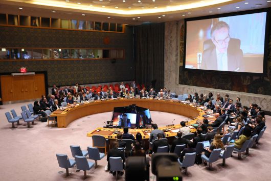 13일 미국 뉴욕 유엔본부에서 이스라엘과 이란 분쟁 관련 안전보장이사회 긴급회의가 열렸다./AFP 연합뉴스 |
