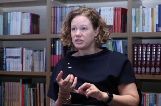 재클린 버튼 콩스버그마리타임 고객 경험 디자인 디렉터 및 노르웨이 여성 국제해운 및 무역협회 회장이 서울 강남구 한국고등교육재단에서 아시아경제와 인터뷰 하고 있다. 조용준 기자 |