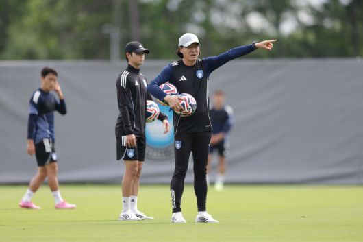 울산HD 김판곤 감독이 14일(한국시간) 미국 노스캐롤라이나주 샬럿에 있는 아트리움 헬스 퍼포먼스 파크에서 훈련을 지휘하고 있다. 사진 | 울산HD |