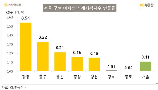 서울 자치구별 아파트 전셋값 변동률. |