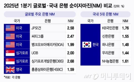 2025년 1분기 글로벌·국내 은행 순이자마진(NIM) 비교/그래픽=윤선정 |
