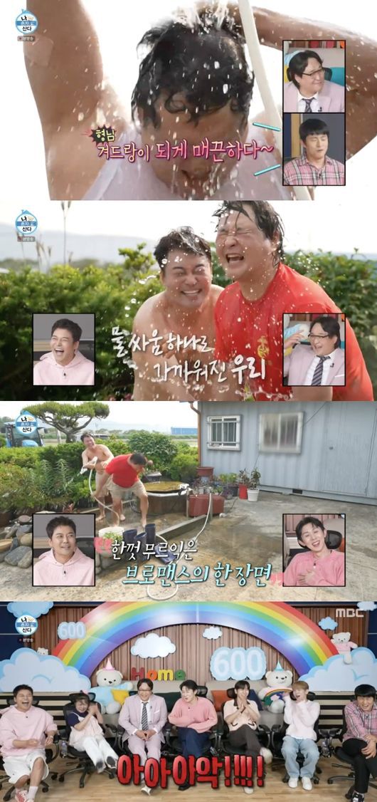 결국 물싸움으로 번진 두 사람은 서로를 향해 물을 뿌리다가 의도치 않게 손을 잡고 터치하는 등 브로맨스를 뽐내기도 했다. 이를 본 키는 헛구역질을 했고, 박나래는 “뭐야 둘이”, 기안84는 “주승이 때부터 왜 그래”라고 경악했다. 이에 전현무는 “순간 묘하긴 하더라”라고 한 술 더 떠 폭소케 했다.