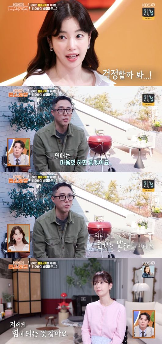 기은세 오빠는 “동생이 다시 연애하면 좋겠냐”는 물음에 “연애는 마음껏 했으면 좋겠다. 결혼은 자기가 하고 싶으면 하겠죠. 두 번, 세 번 할 수도 있는 거니까. 정직하고 듬직한 남자였으면 좋겠다”라고 전했다.