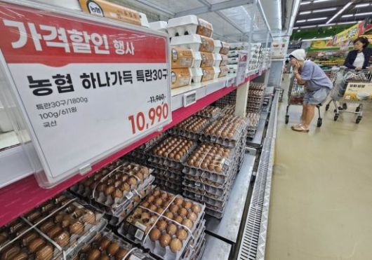 계란 가격이 전년대비 11.5% 상승하며 계란 한 판 가격이 평균 7천원을 넘어서며 '밥상물가'가 비상이다. 사진은 지난 10일 서울의 한 대형마트의 계란 판매대 모습. 윤동주 기자 |
