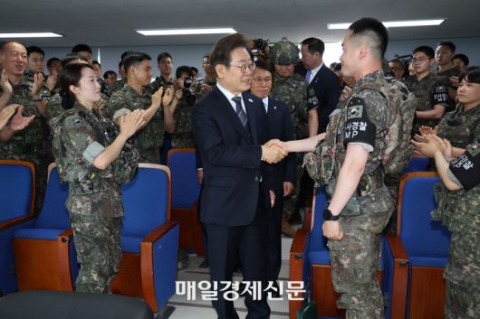 이 대통령은 “여러분이 잘 지켜주셔서 우리 국민이 편안한 일상을 누리고 있다”며 “잠깐 험악한 상황을 상정했는데 역시 일선 지휘관들, 장병 여러분이 특정 개인이 아니라 국민과 국가에 대한 충성심으로 자기 역할을 잘해주셨다”고 강조했다. 그러면서 “최근 일부 장병들이 퇴직도 많이 하고 사기가 꺾였다는 얘기가 있는데 국민은 전혀 그렇게 생각 안 한다”며 “과거 군대와 지금 군대는 전혀 다르다고 국민이 인정한다”고 말했다.