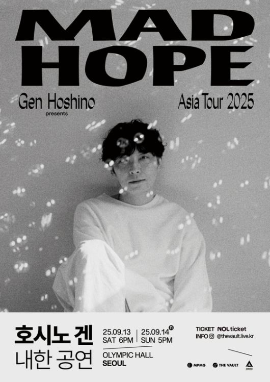 '호시노 겐 프레젠트 매드 호프 아시아 투어' 서울 공연은 9월 13일과 14일 양일간 서울 올림픽공원 올림픽홀에서 열린다. 추가 공연 티켓은 오는 20일 오후 6시 NOL 티켓을 통해 단독 오픈된다.