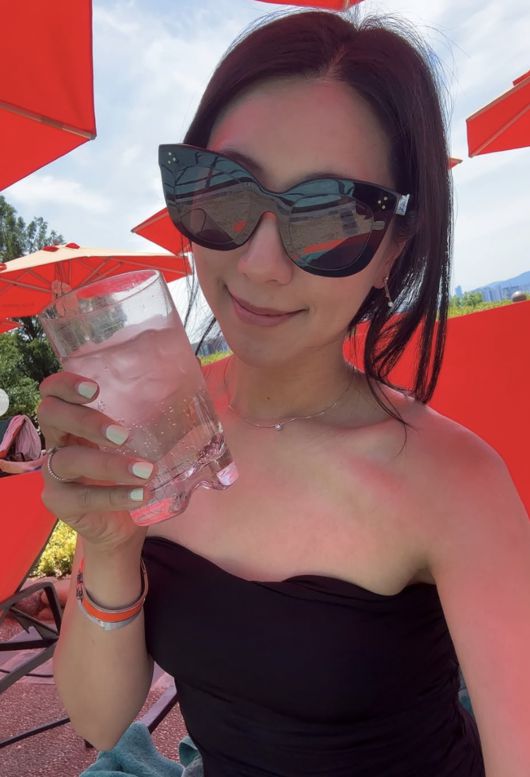 공개된 사진 속 서수연은 수영장 썬베드에 앉아 음료를 들고 여유를 만끽하고 있는 모습. 올블랙 튜브톱 수영복에 화려한 선글라스를 매치해 우아하면서도 세련된 리조트룩을 완성했다.