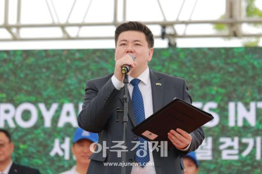 [사진=유대길 기자 dbeorlf123@ajunews.com] '2025 서울 외국인 궁궐 걷기대회'가 14일 오전 서울 종로구 의정부지 역사유적광장에서 열렸다. 다우토프 바우르잔 주한카자흐스탄 주재관이 한국어로 축사를 하고 있다. 2025.06.14 아주경제=유대길 기자 dbeorlf123@ajunews.com - Copyright ⓒ [아주경제 ajunews.com] 무단전재 배포금지 -