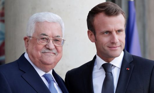 에마뉘엘 마크롱 프랑스 대통령(오른쪽)과 마흐무드 압바스 팔레스타인 자치정부 수반. 사진은 2018년 9월 압바스가 파리를 방문해 엘리제궁에서 마크롱과 만났을 때의 모습. 로이터연합뉴스 |