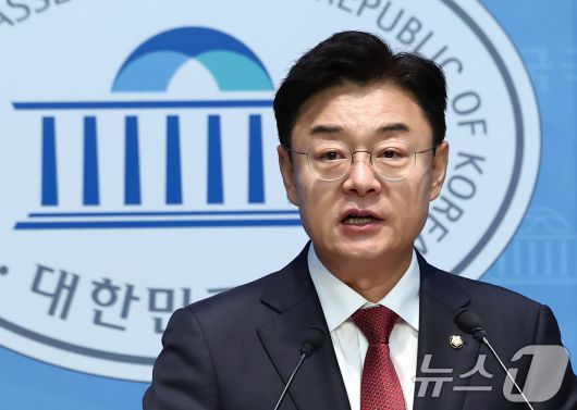 김성원 국민의힘 의원이 12일 오전 서울 여의도 국회 소통관에서 원내대표 출마 기자회견을 하고 있다. 2025.6.12/뉴스1 ⓒ News1 김민지 기자 |