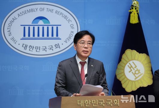 [서울=뉴시스] 고승민 기자 = 송언석 국민의힘 의원이 지난 12일 서울 여의도 국회 소통관에서 원내대표 선거 출마 기자회견을 하고 있다. 2025.06.12. kkssmm99@newsis.com |