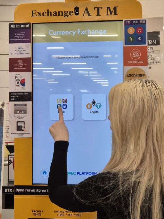 장면 1. 서울 명동. 캐리어를 끌고 어딘가를 찾듯 두리번거리는 동남아시아에서 온 듯한 젊은 여성이 눈에 띈다. 손에는 몇 장의 필리핀 페소 지폐. 환전소를 찾아 헤매던 그녀의 발길이 멈춘 곳은 노랑 바탕의 어느 무인 기기 앞. ‘DTM’이라 적힌 화면에는 다양한 국기와 함께 ‘외화 환전’이라는 문구가 선명하다. 여성이 조심스럽게 페소 지폐를 투입구에 넣자, 기기는 순식간에 권종과 금액을 인식한다. 잠시 후, 화면에는 실시간 환율과 함께 받을 수 있는 원화 금액이 표시되고, 여성이 확인 버튼을 누르자 원화 지폐 다발과 함께 교통카드 한 장이 나온다. 한국 여행은 이렇게 한결 편해졌다.